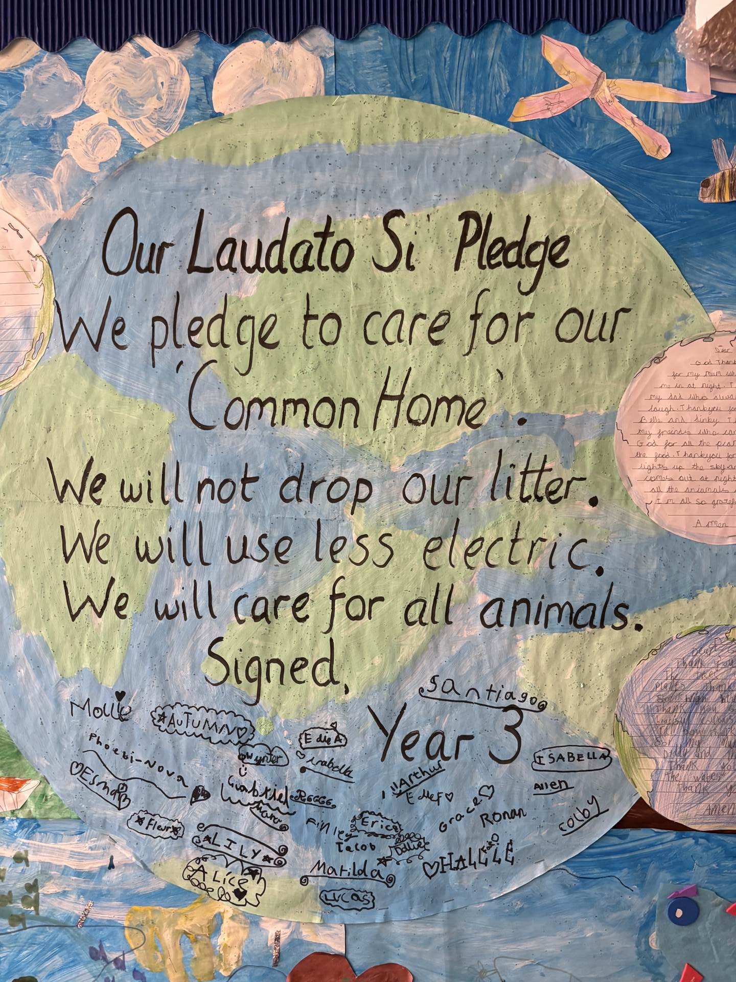 We then wrote our own class pledge which all children signed, agreeing to follow the promises to care for all of God's creations.