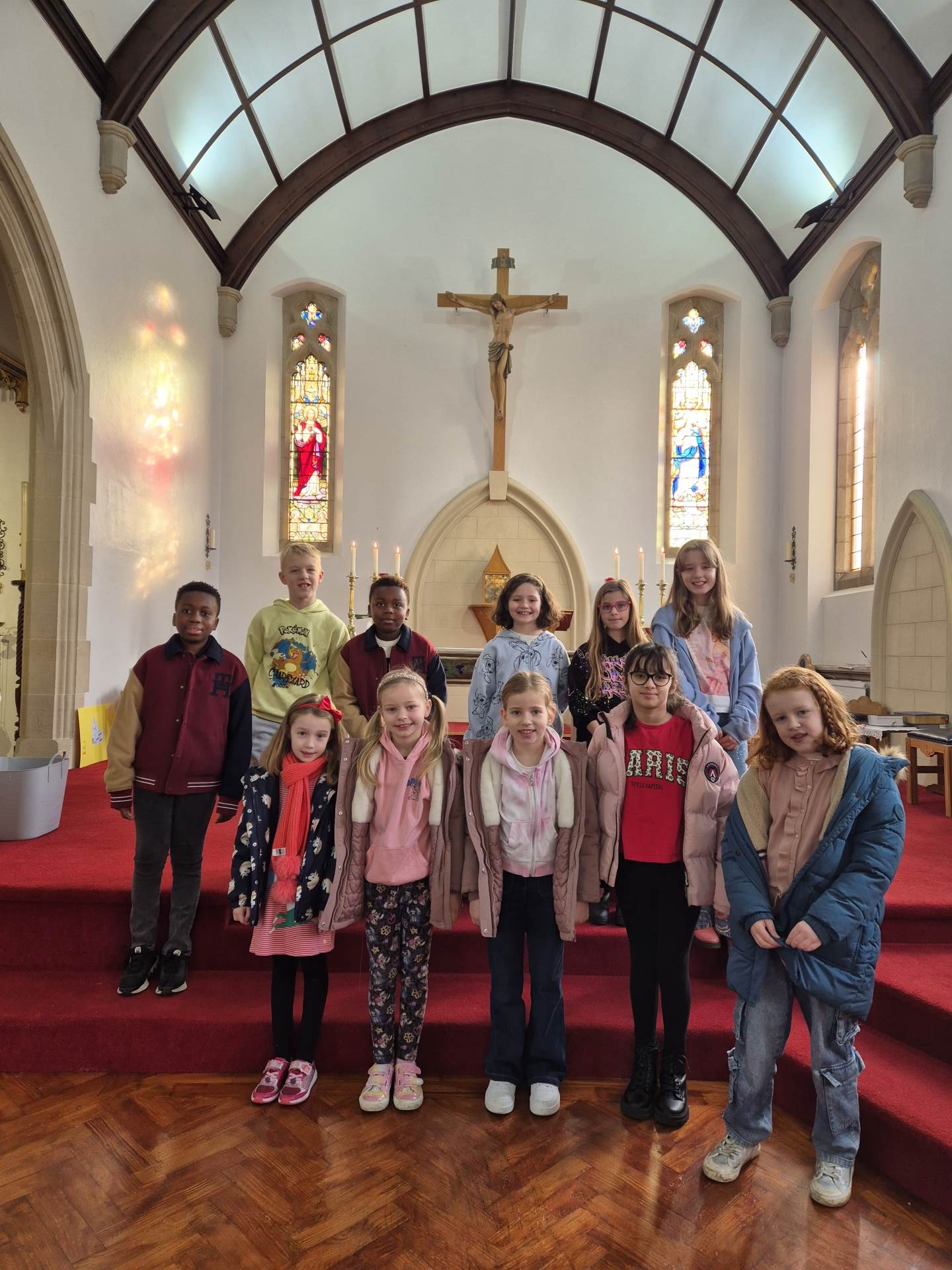 Each second Sunday of the month, Father Jerold invites the children of the parish to lead the 9am Mass at the Assumption of Our Lady Church, in Maldon. The children share the word of God and lead the congregation in prayer. In school, we practise the hymns to sing during the mass and have even been joined by some of the church musicians.