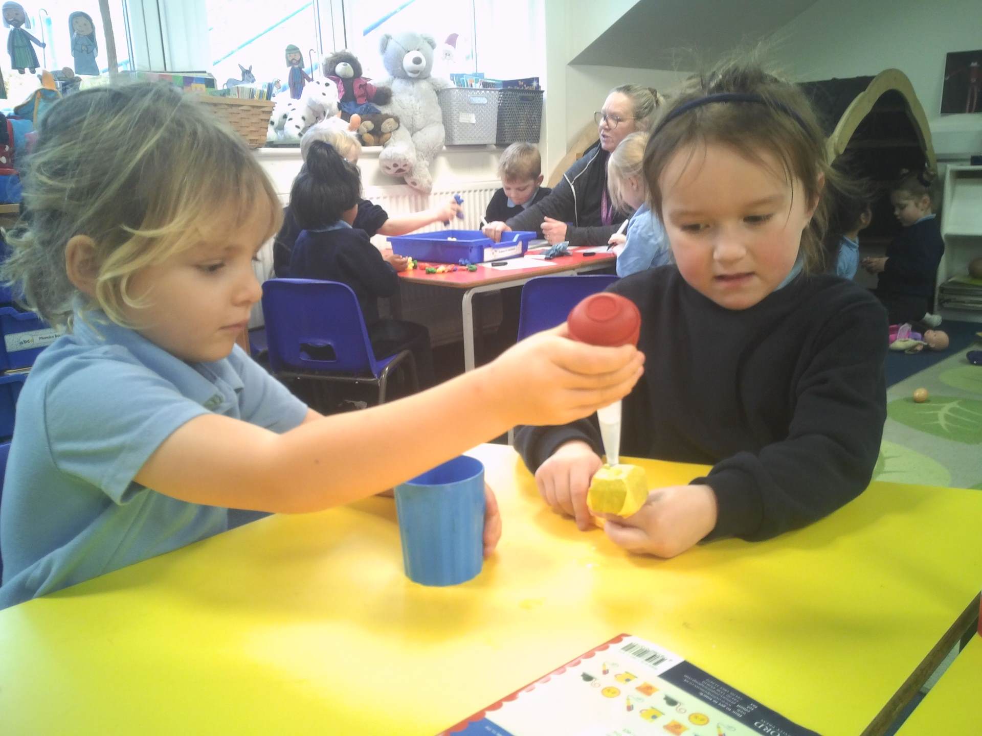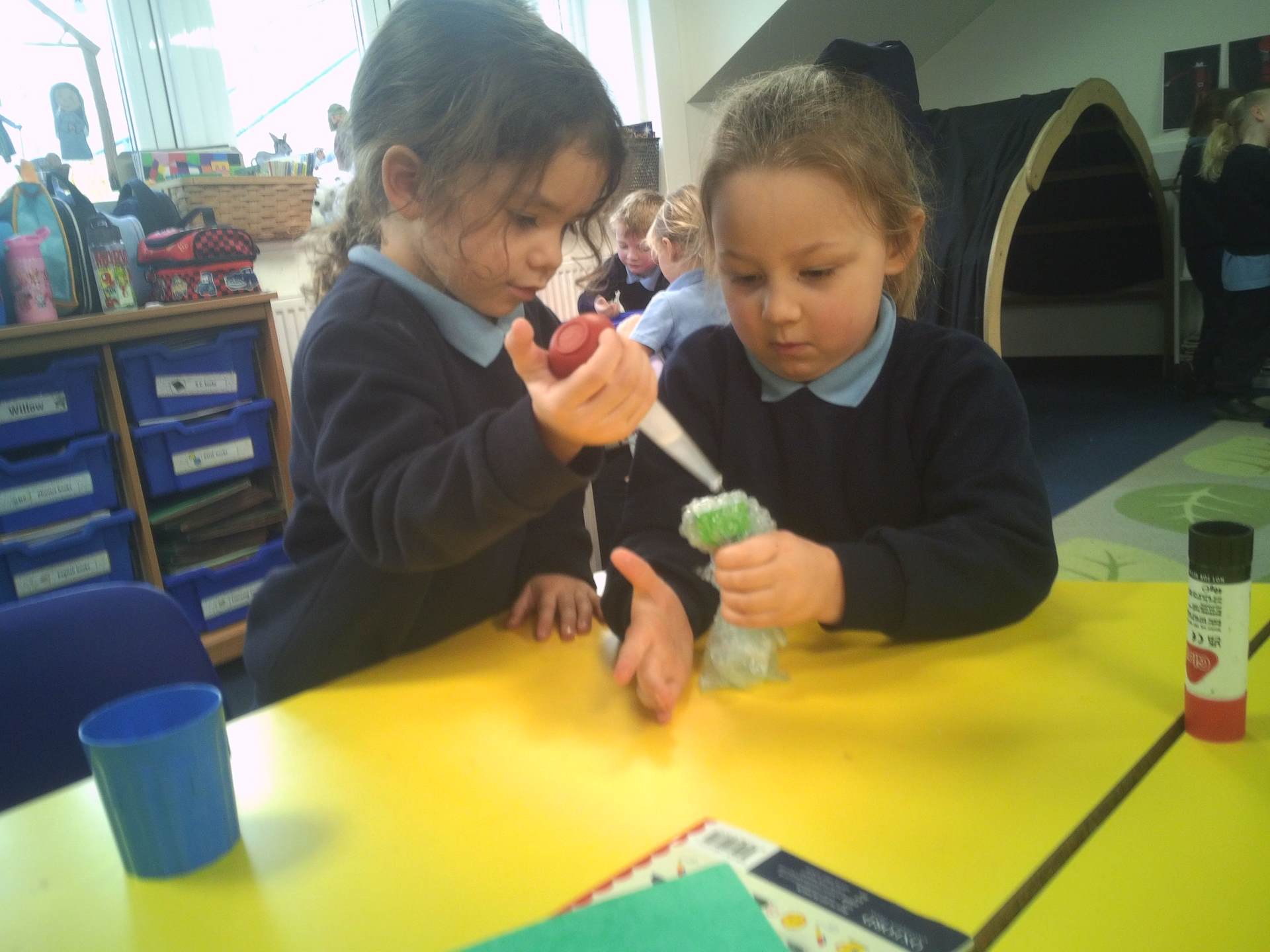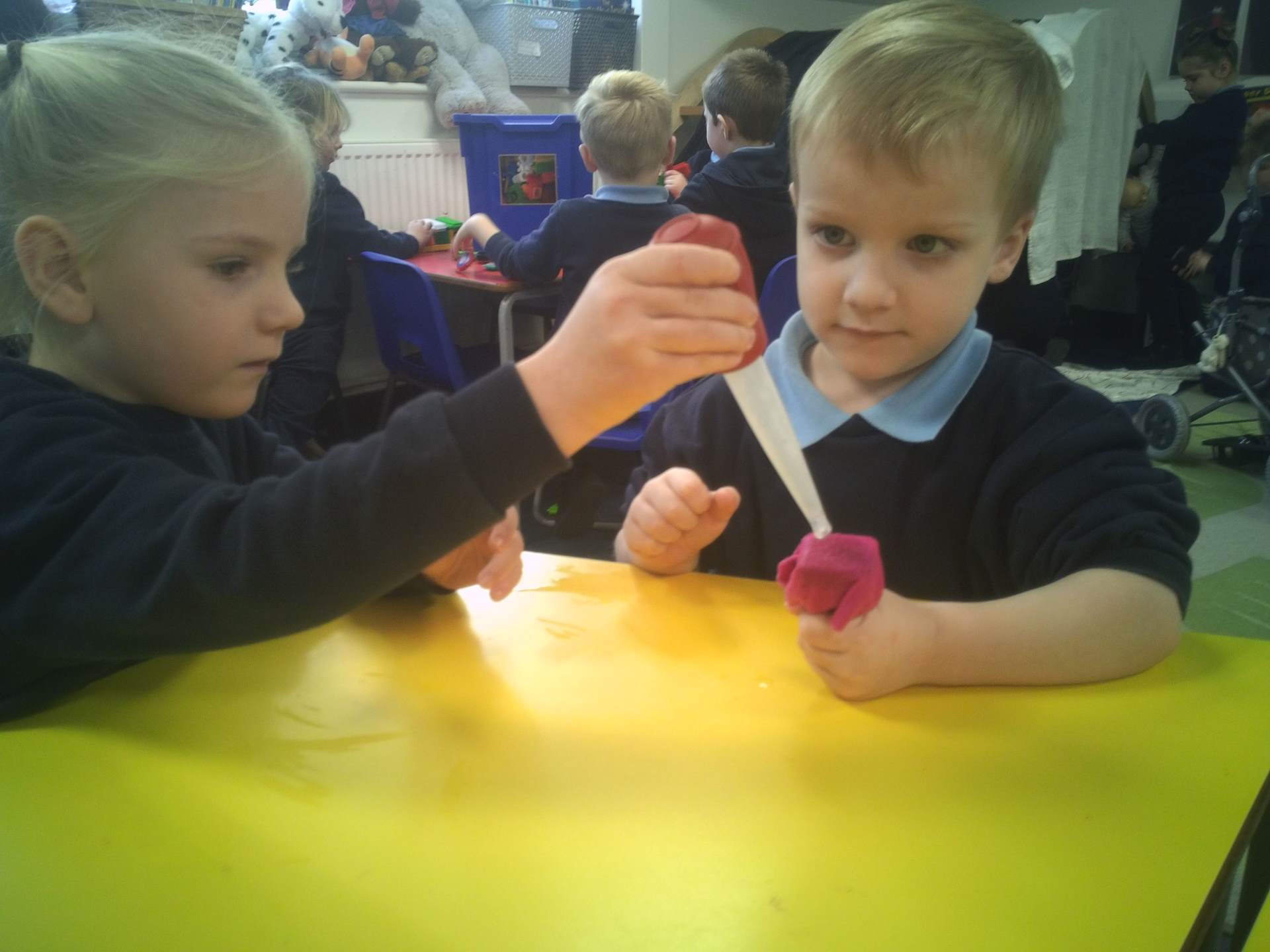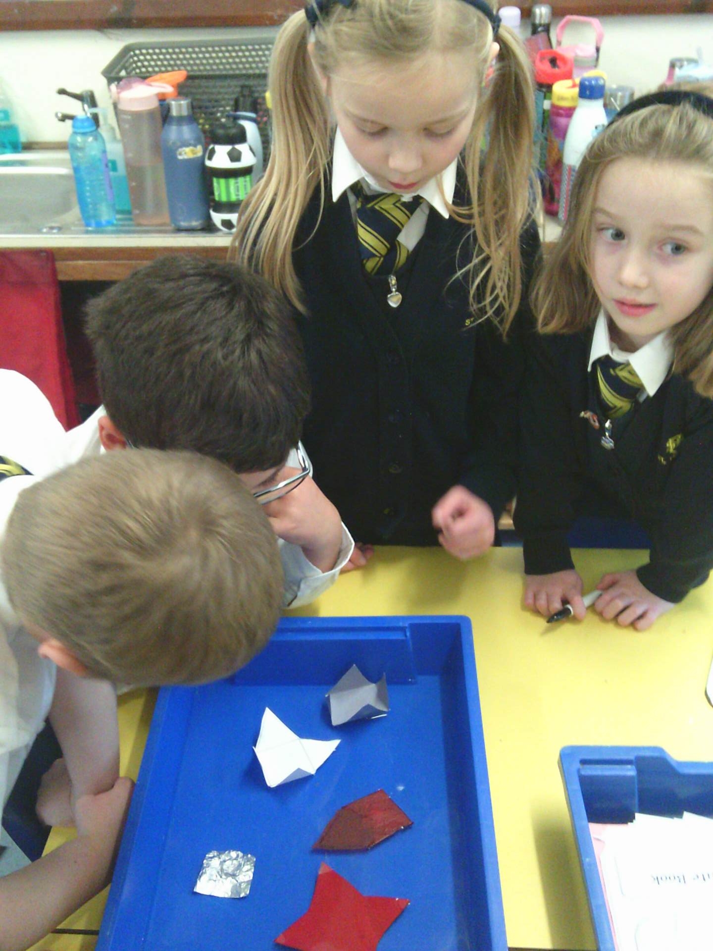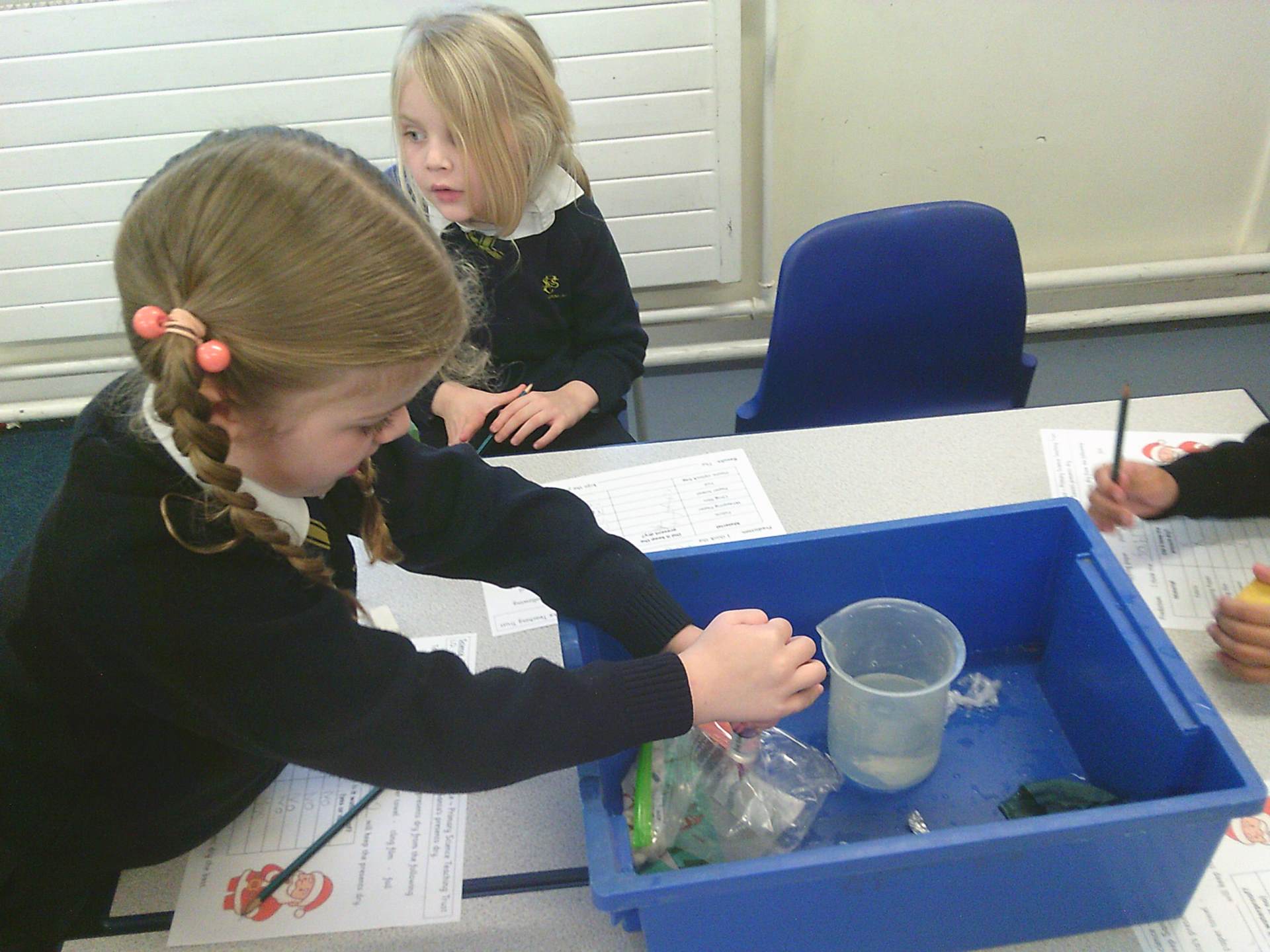 One challenge focused on discovering which materials would keep Santa’s presents dry. Children tested a variety of materials, observing which absorbed water and which were waterproof. In the Star Challenge, children created stars using different materials and placed them onto water to see which star opened first, learning how materials react differently when wet.