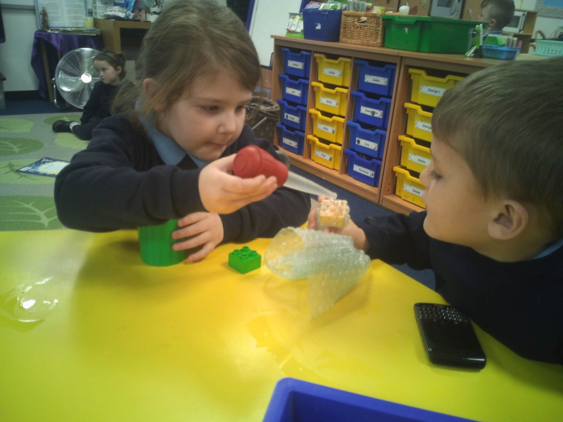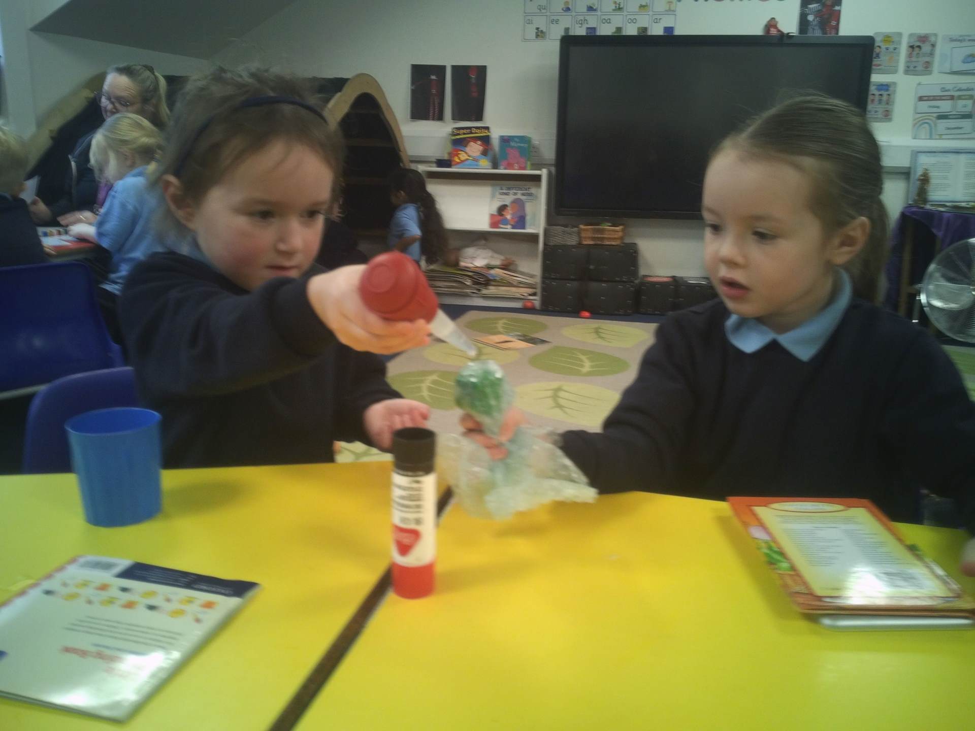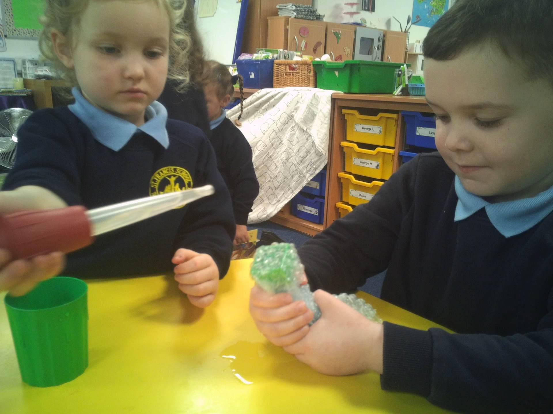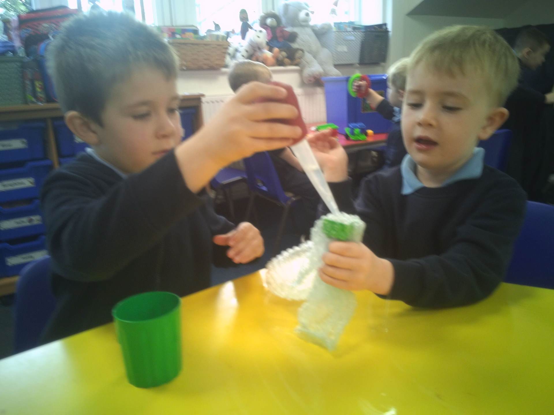 One challenge focused on discovering which materials would keep Santa’s presents dry. Children tested a variety of materials, observing which absorbed water and which were waterproof. In the Star Challenge, children created stars using different materials and placed them onto water to see which star opened first, learning how materials react differently when wet.