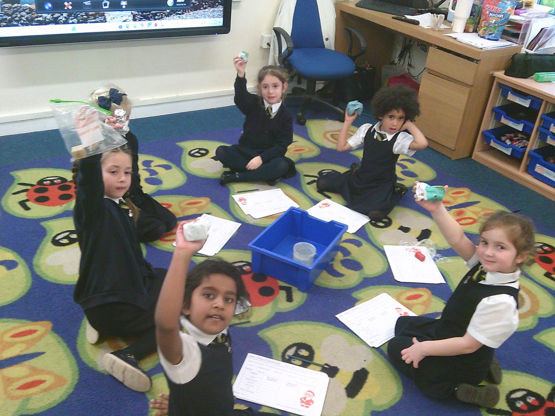 To help Santa stay quiet on Christmas Eve, children also investigated which materials were most effective at muffling the sound of Santa’s footsteps, listening carefully and comparing results. Another investigation explored which materials would stop a snowman from melting, helping children understand insulation and temperature.
