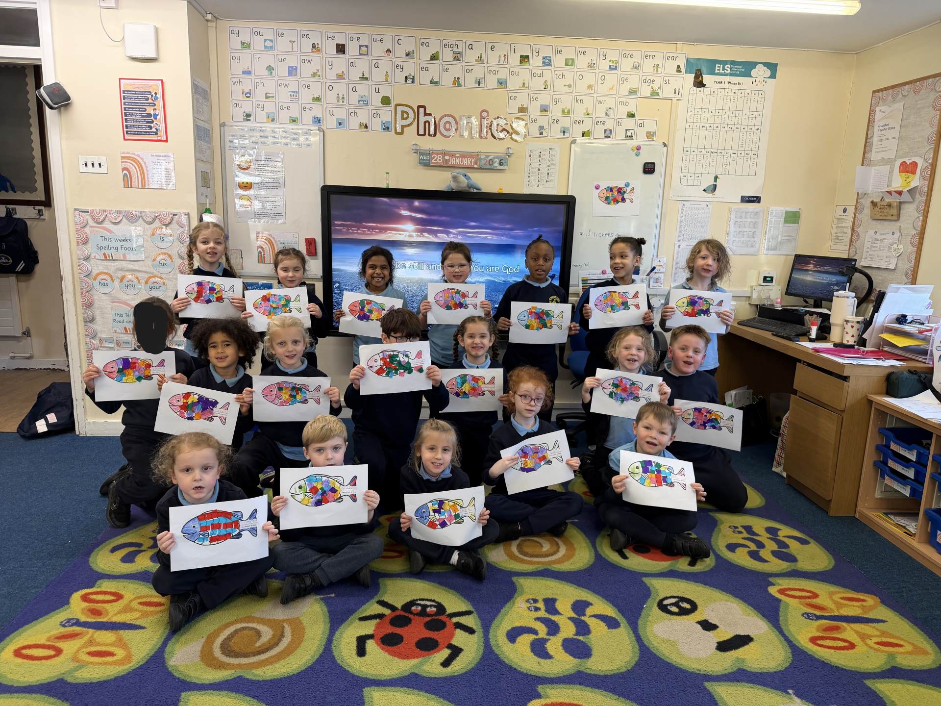 Finally, the children created some wonderfully colourful fish which we have displayed on our classroom wall to represent the story of Peter recasting his nets following the orders of Jesus and becoming one of his disciples.